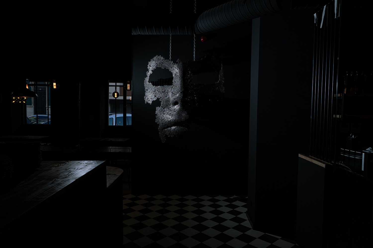 Inspirado no imaginário de Veneza e influenciado pelo ambiente industrial do espaço, Rui Basilio criou uma máscara feita com 4.000 porcas de metal que são a cara da nova Forneria, em Lisboa.